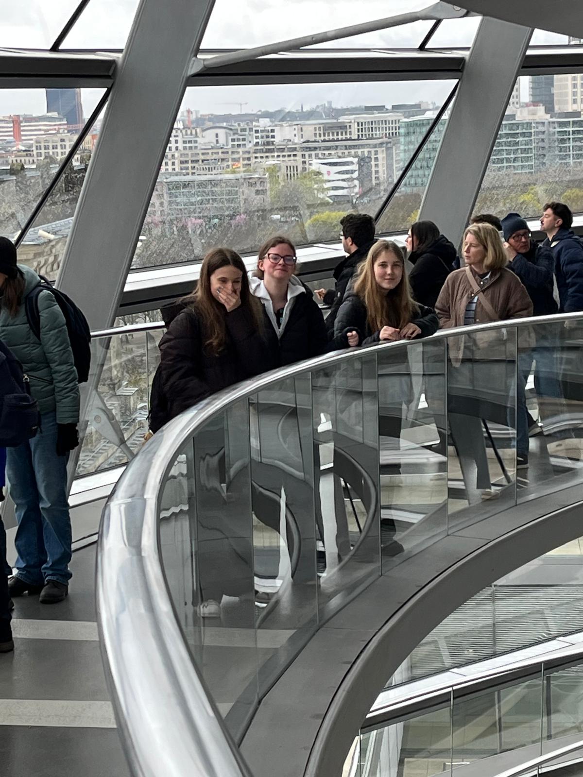 Na Placu Poczdamskim czekała na wszystkich kolejna atrakcja - wjazd jedną z najszybszych wind w Europie na punkt widokowy „Panorama Punkt” znajdujący w budynku Kollhoff Tower. Szybka winda zabrała wycieczkę na górę w zaledwie 20 sekund, pokonując 24 piętra. Ostatniego dnia ósmoklasiści zwiedzili Muzeum Techniki, gdzie historia spotyka się z innowacją oraz East Side Gallery – najdłuższy zachowany fragment Muru Berlińskiego, będący dziś symbolem wolności i przemian politycznych w Europie. To ostatnie miejsce stanowiło istotny element realizowanego projektu, umożliwiając uczniom bezpośredni kontakt z historią oraz refleksję nad znaczeniem wydarzeń okresu zimnej wojny.