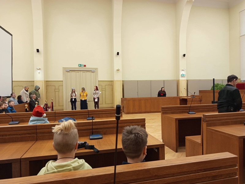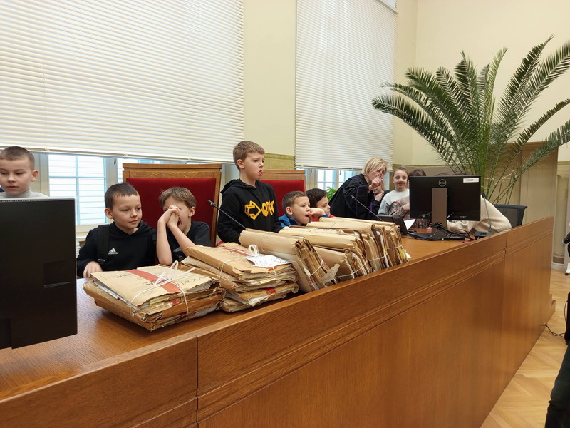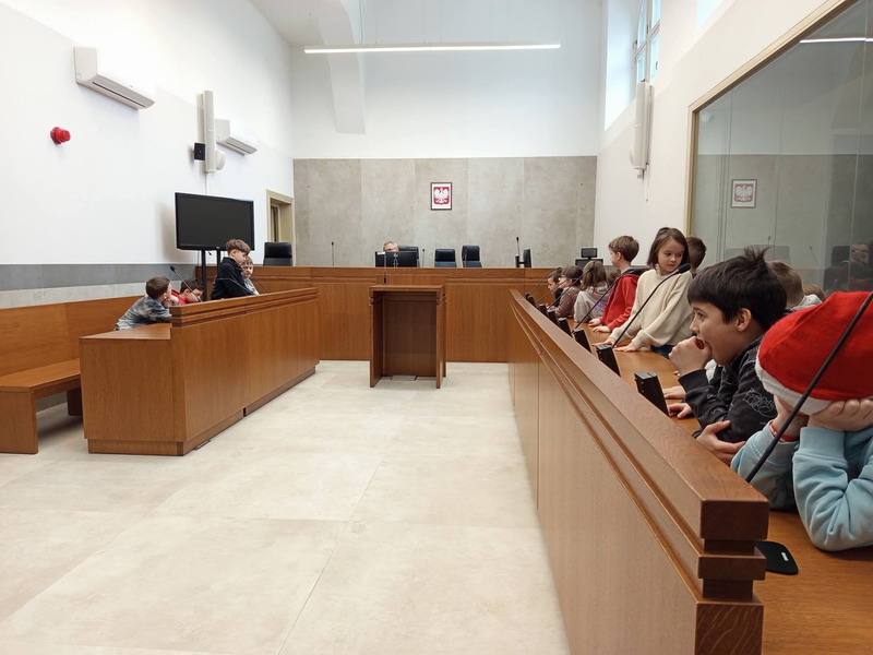 Klasa 2a miała możliwość zwiedzania Sądu Apelacyjnego w Łodzi. Dzieci uczestniczyły w pozorowanej rozprawie przeciwko pewnemu Lisowi. Uczniowie dowiedzieli się kim jest sędzia, adwokat, prokurator i świadek. Zaglądali do miejsc, dostępnych jedynie pracownikom sądu.