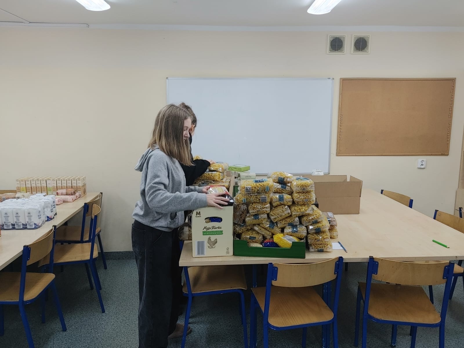 Część produktów została przeznaczona na paczki dla rodzin naszych uczniów potrzebujących wsparcia. Pozostałe zostały przekazane do Punktu Pomocy Charytatywnej.